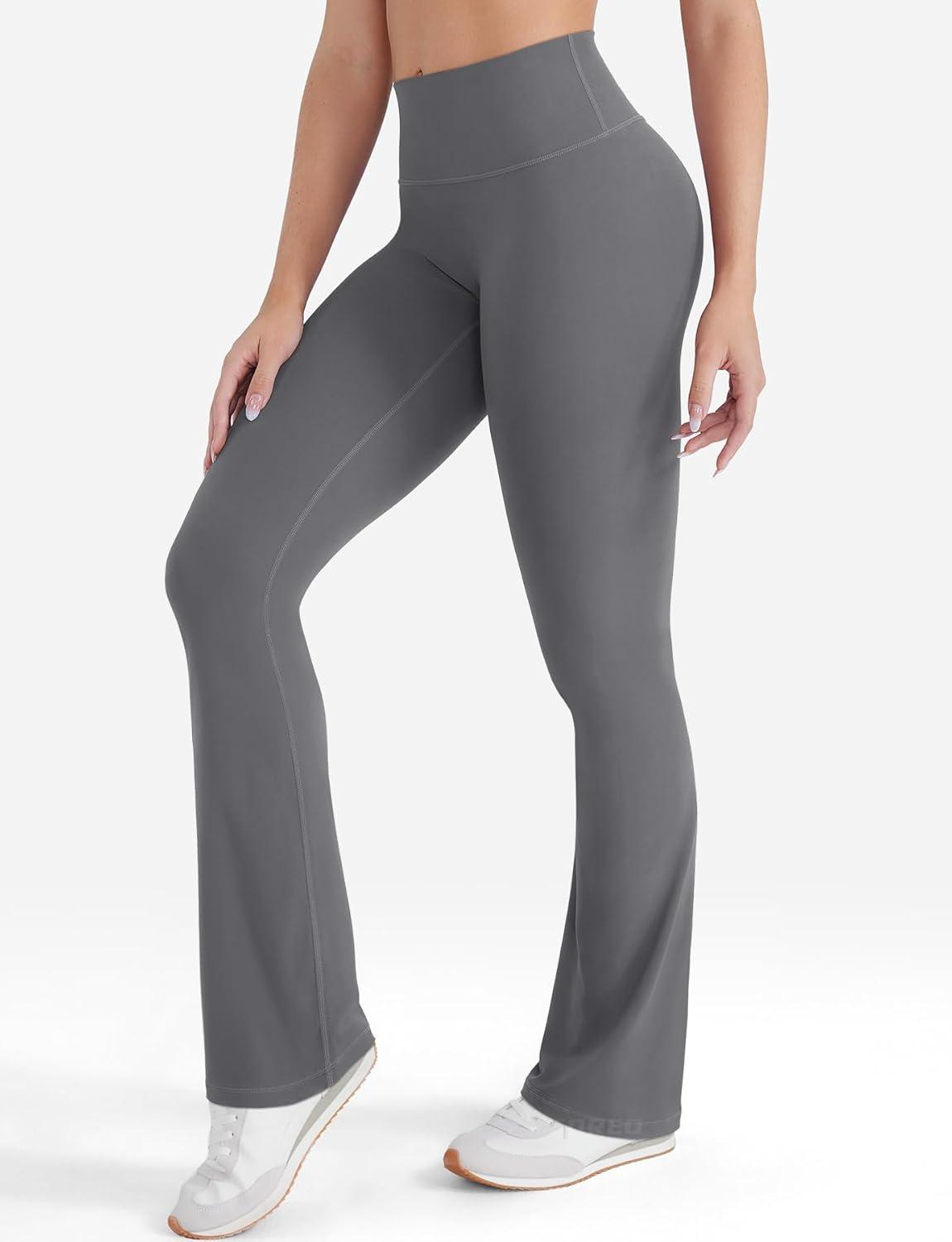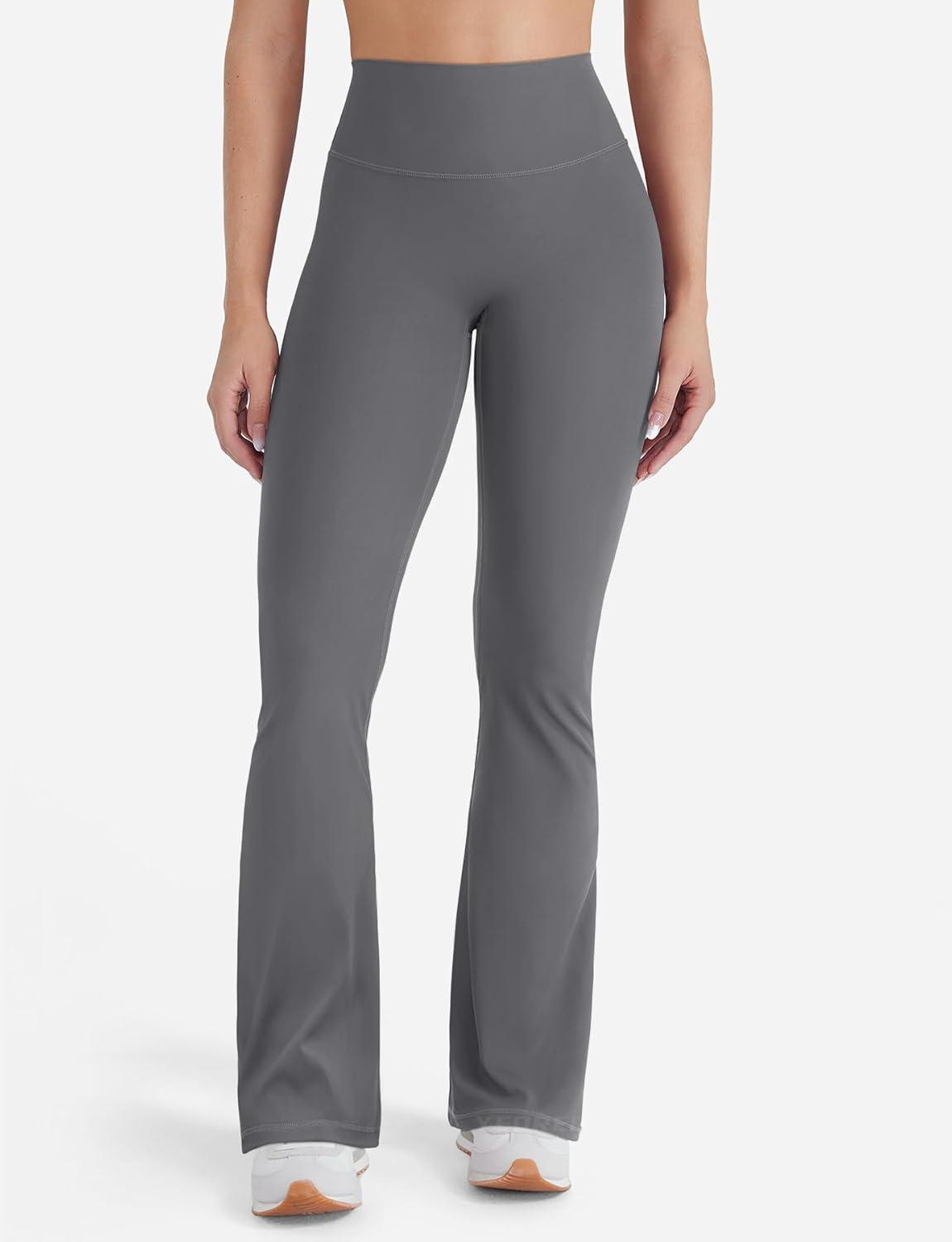 imageYEOREO Mini Flare Leggings for Women 285305325 Hidden Scrunch Workout High Waisted No Front Seam Craze Gym Yoga PantsLara Smoke