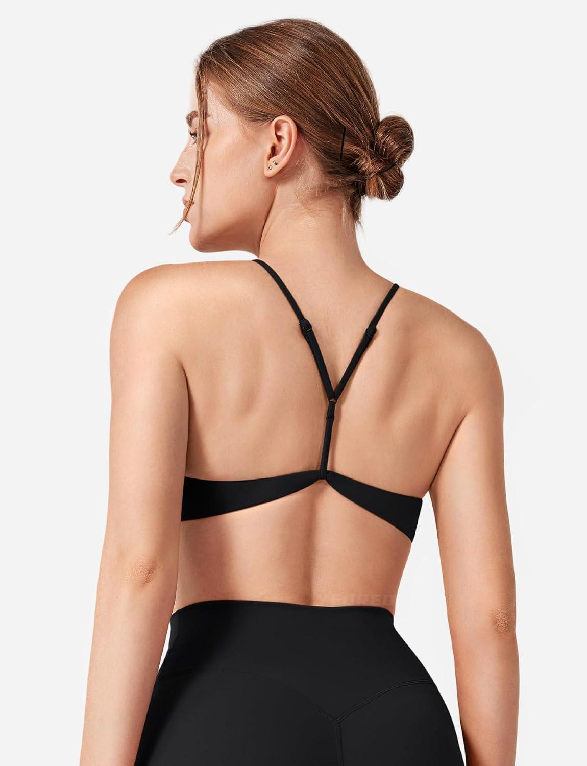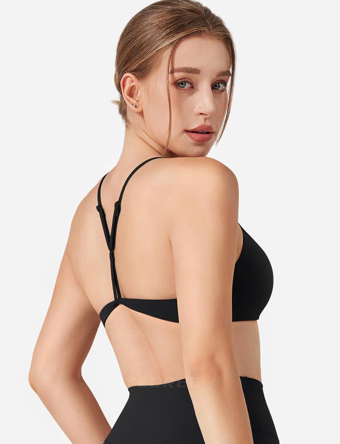 YEOREO Workout Sports Bras for Women Padded Y Back V Neck Bra Adjustable Straps Zaahira Backless Gym Yoga Tops(Black)