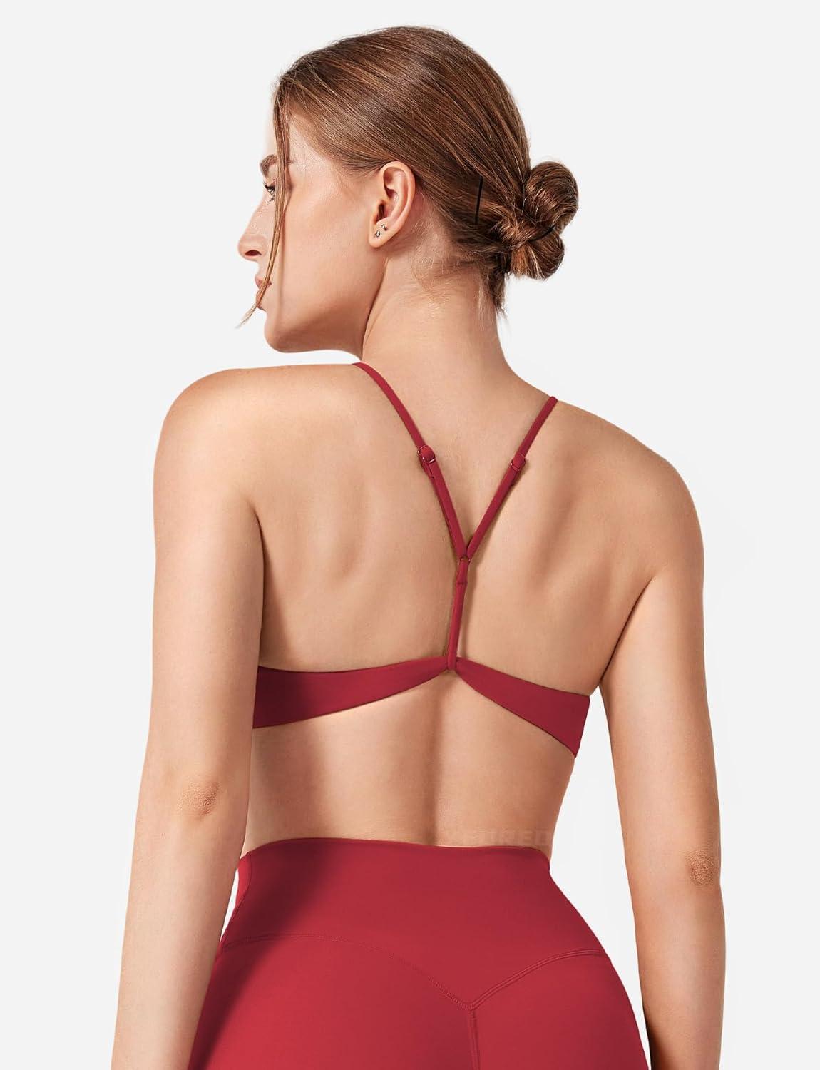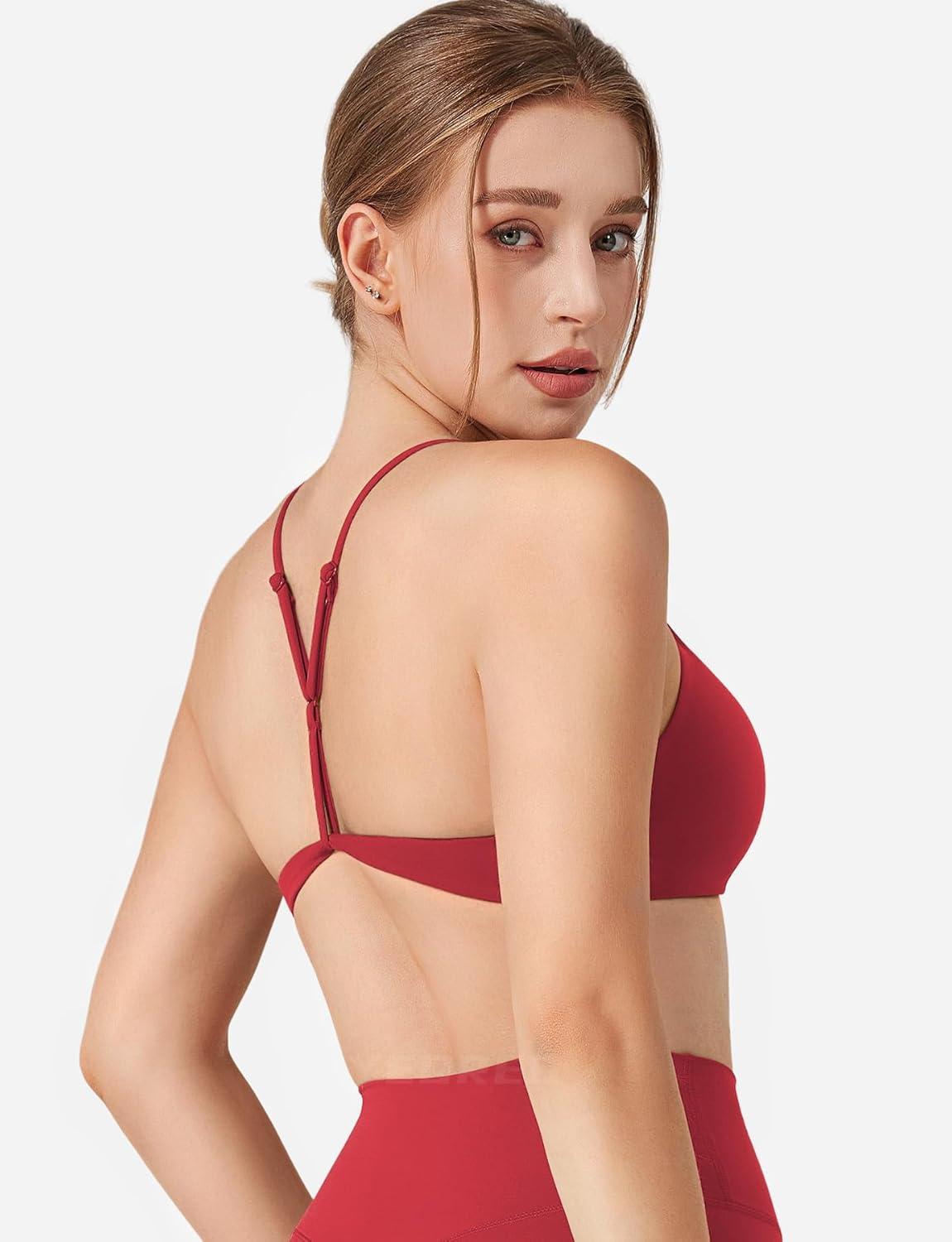 YEOREO Workout Sports Bras for Women Padded Y Back V Neck Bra Adjustable Straps Zaahira Backless Gym Yoga Tops(Maroon)