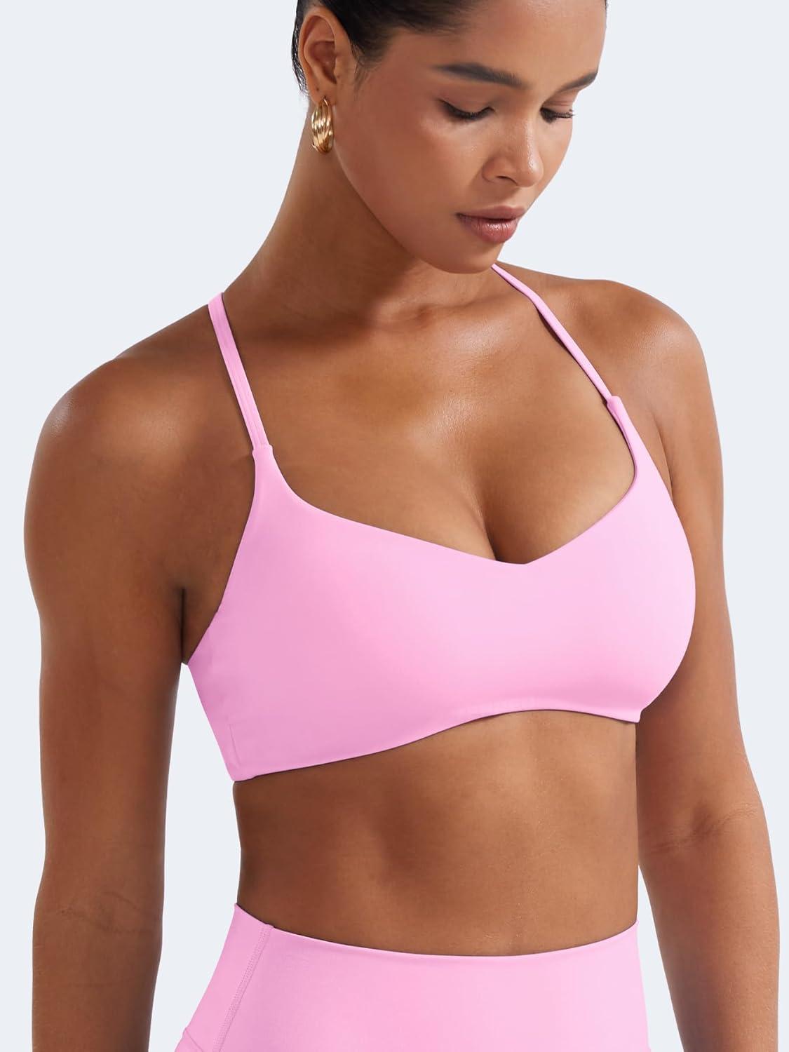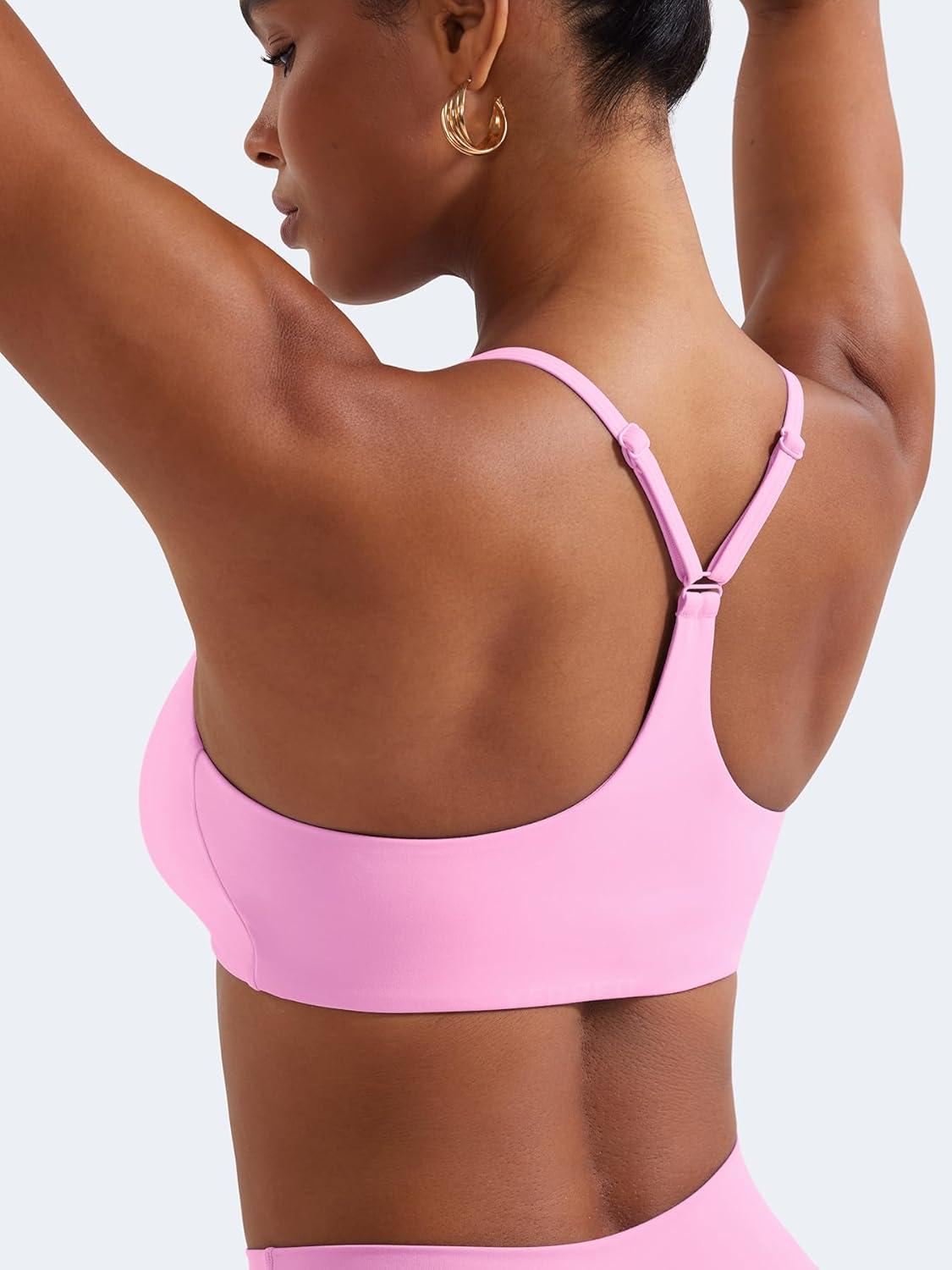 YEOREO Y Back Sports Bras for Women Padded Racerback Bra Paisely Light Impact Adjustable Straps Gym Workout Tops(Bubblegum Pink)