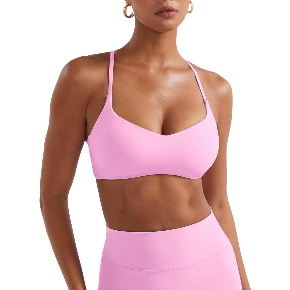 imageYEOREO Y Back Sports Bras for Women Padded Racerback Bra Paisely Light Impact Adjustable Straps Gym Workout TopsBubblegum Pink