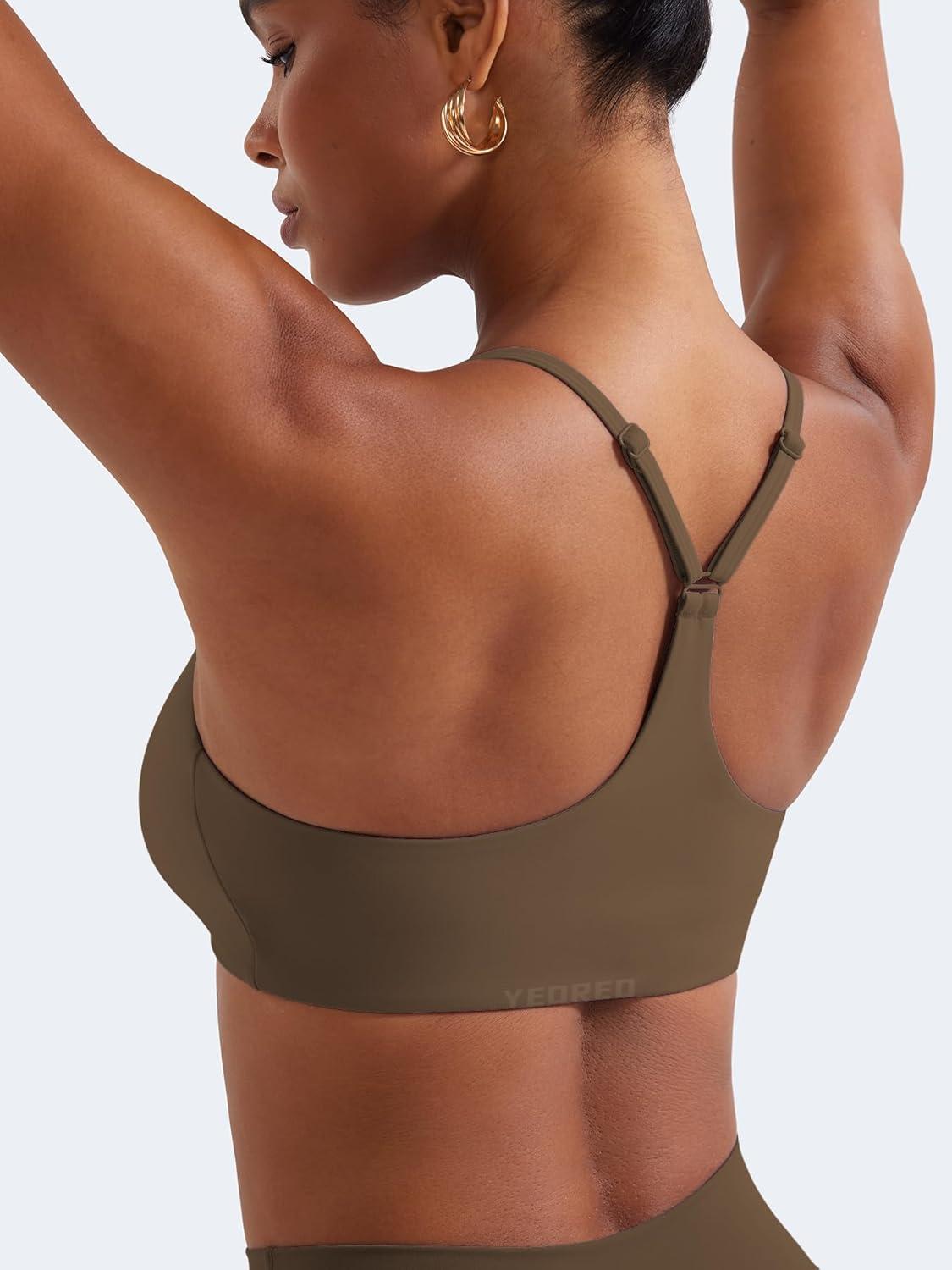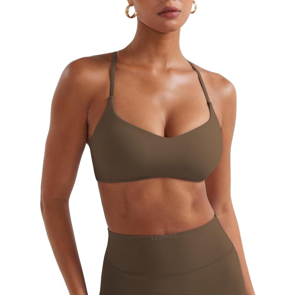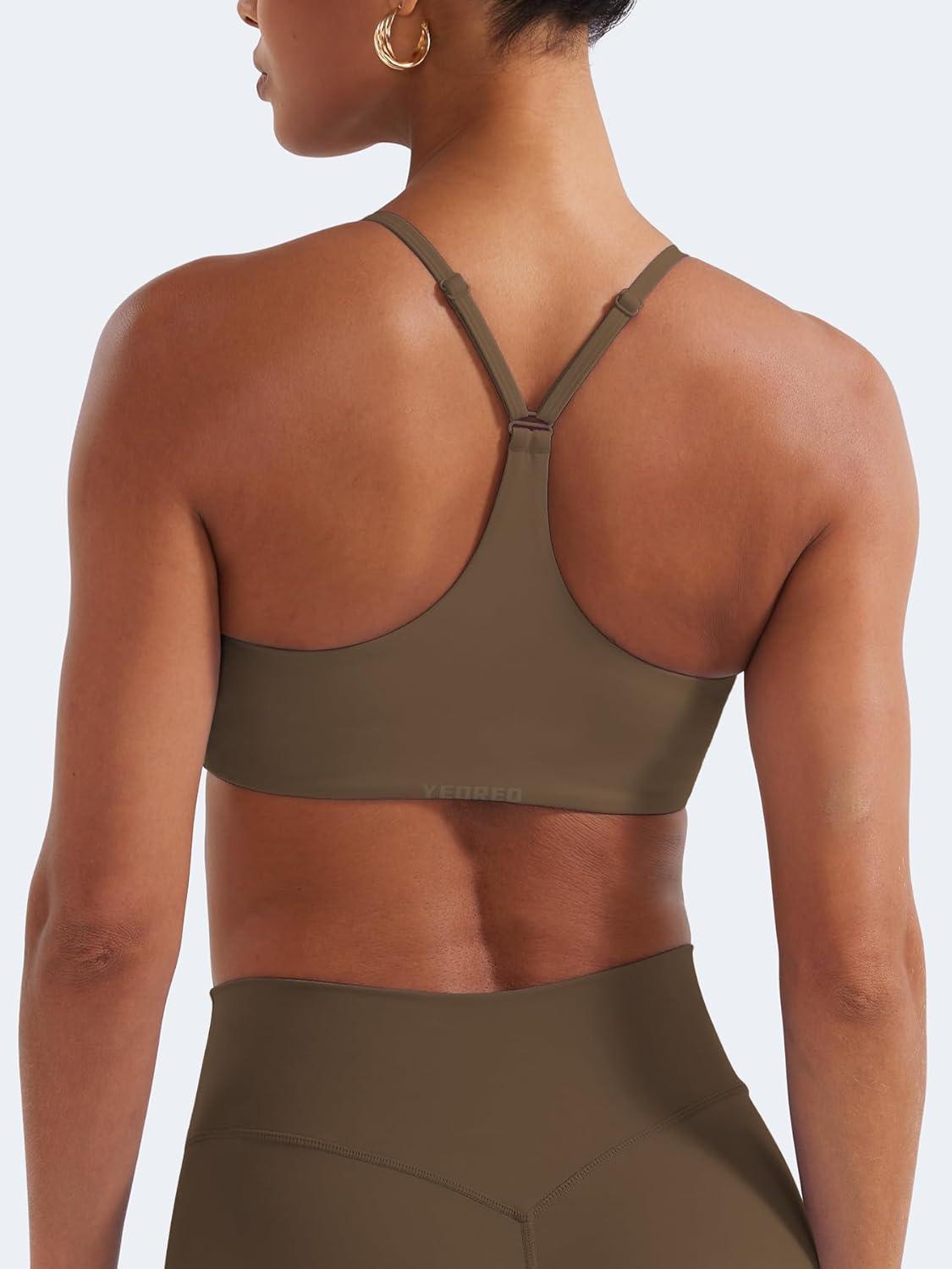 YEOREO Y Back Sports Bras for Women Padded Racerback Bra Paisely Light Impact Adjustable Straps Gym Workout Tops(Coffee)