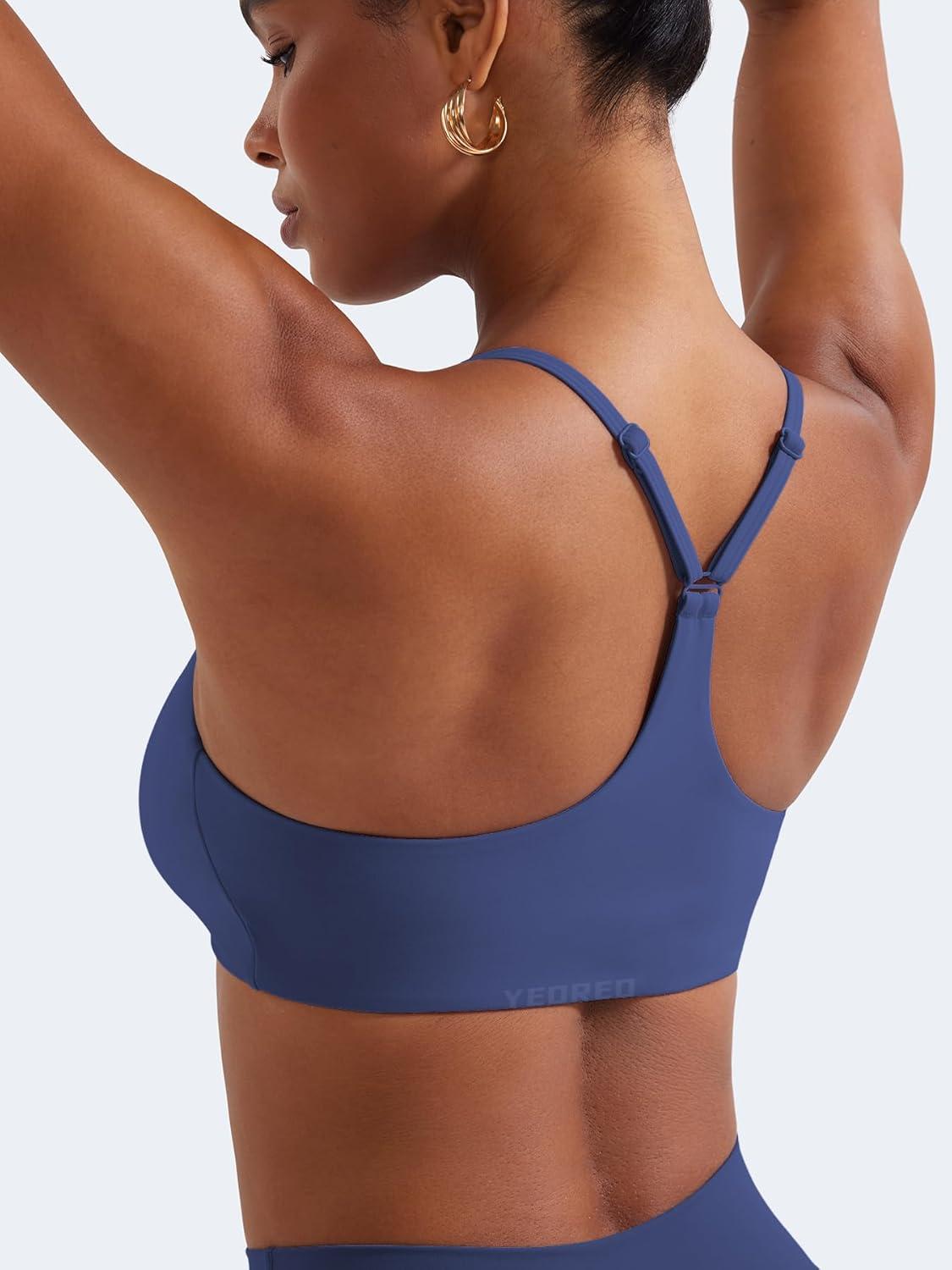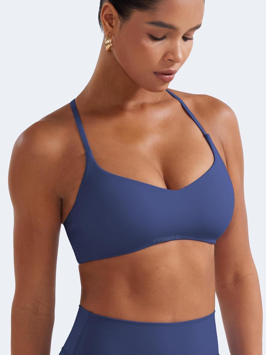 imageYEOREO Sports Bras for Women Deep V Neck Criss Cross Bra Wafiya Padded Low Impact Workout Gym Crop TopAiry Blue