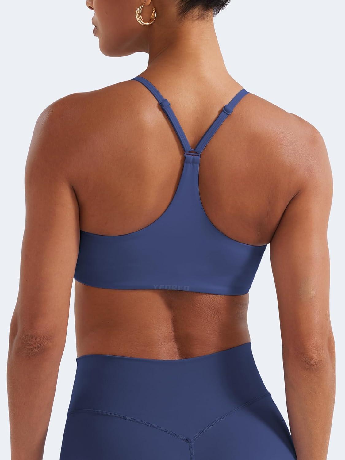imageYEOREO Y Back Sports Bras for Women Padded Racerback Bra Paisely Light Impact Adjustable Straps Gym Workout TopsNavy